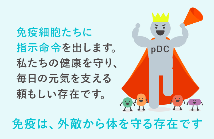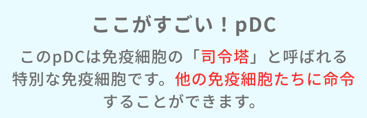 免疫の維持をサポートするプラズマ乳酸菌 世界で初めて※1 免疫の司令塔pDCに働きかける乳酸菌です。健康な人の免疫機能の維持が報告されています。 一般的な乳酸菌とどこがちがうの?